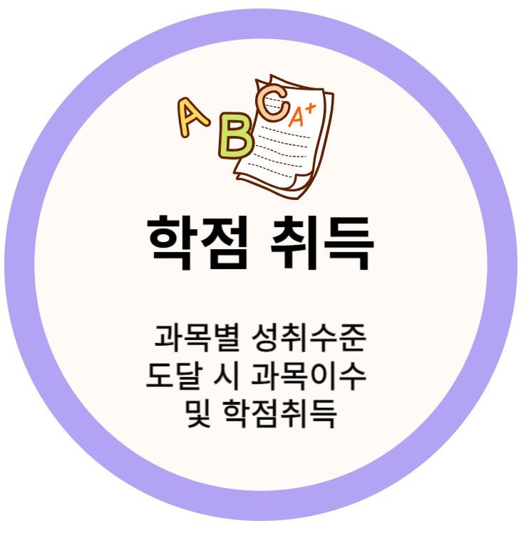| 학점취득 | 성취수준에 관계없이 진급 | 목표한 성취 수준에 충분히 도달하였다고 판단하는 경우에 학점 인정 |