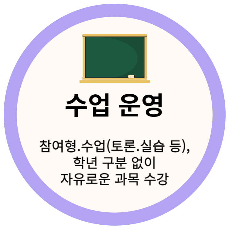 | 수업운영 | 학급별 시간표에 따라 수업 진행 | 개인 시간표에 따라 수업 진행 |