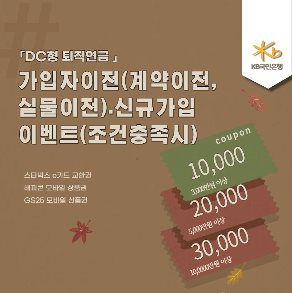 KB국민은행은 DC형 퇴직연금 가입자를 대상으로 특별한 쿠폰 증정 이벤트를 진행하고 있습니다.