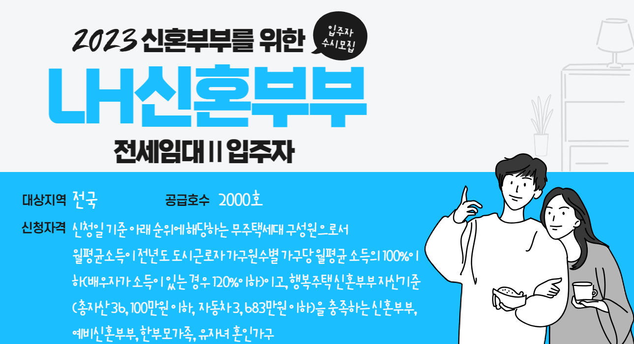 2) 예비신혼부부:신청일 현재 혼인 예정인 사람으로서 입주일 전일까지 혼인신고를 하는 사람