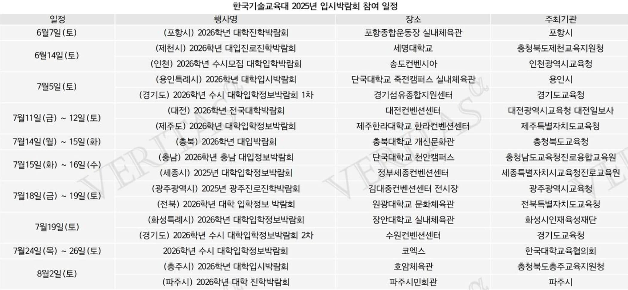 2025 한국기술교육대학교 입시박람회 일정|2026 수시 모집요강 총정리 (정원내·정원외 포함)